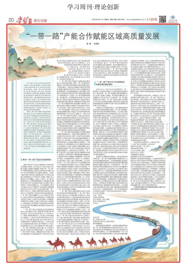 天津日报《学习周刊》刊发重要文章:“一带一路”产能合作赋能区域高质量发展